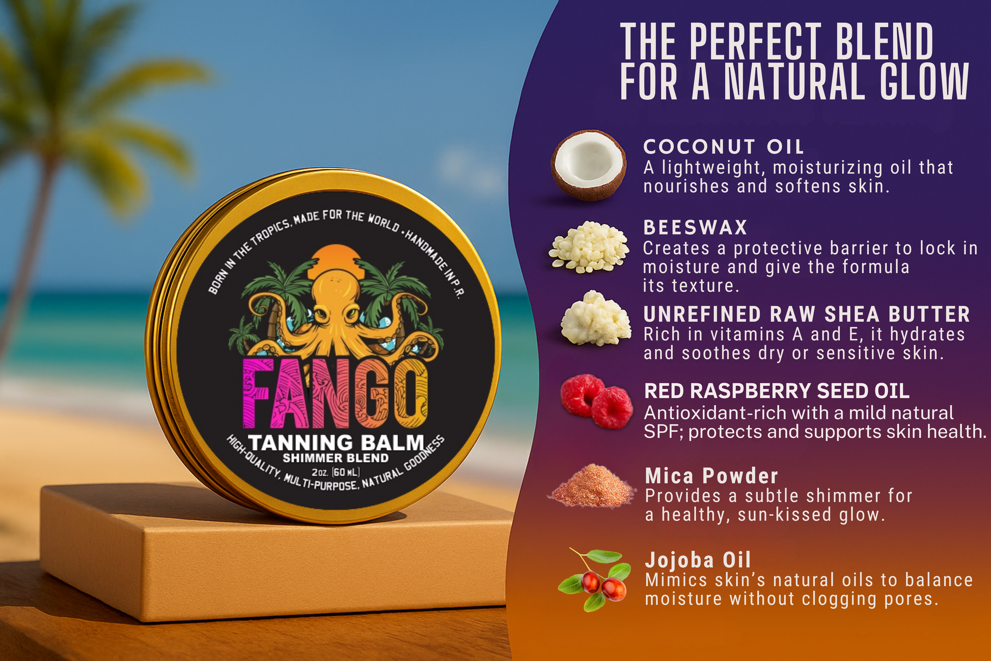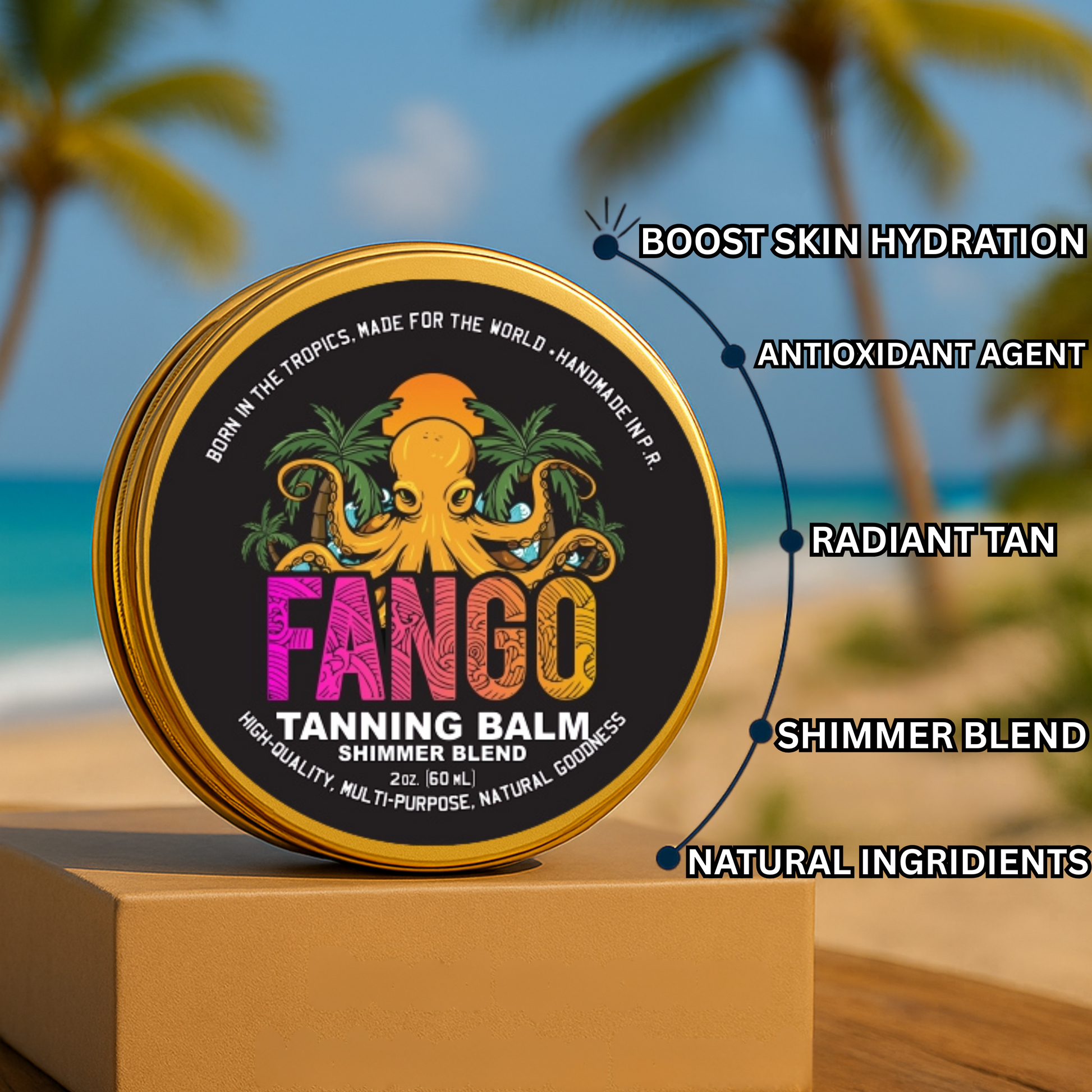 Disfruta de un bronceado natural y brillante con el bálsamo bronceador Fango. Nuestra fórmula cuidadosamente combinada te dará un brillo bronceado mientras nutre e hidrata tu piel. Dile adiós a los químicos agresivos y dale la bienvenida a un bronceado hermoso y saludable.